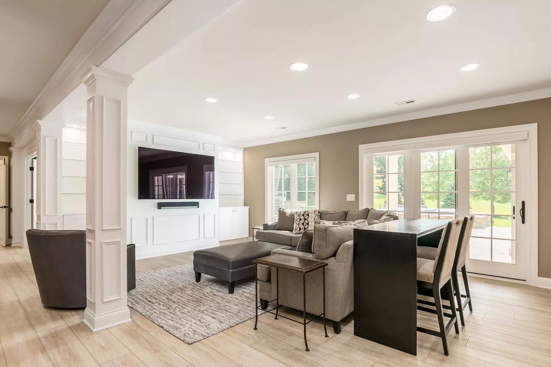 This luxury basement remodel has all a family would love whether with guests, enjoying each other's company throughout the year, or simply taking in home life, any day of the week. Whether you're unwinding by yourself or having the family over, who wouldn't want the luxurious comforts of wonderfully accommodating furniture and a stunning home theater?
