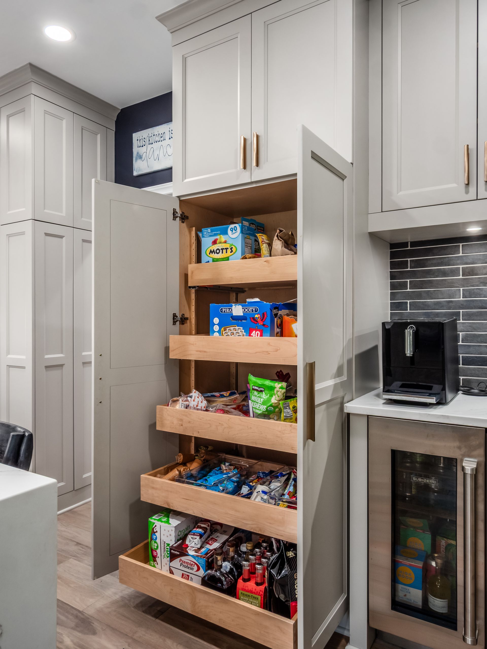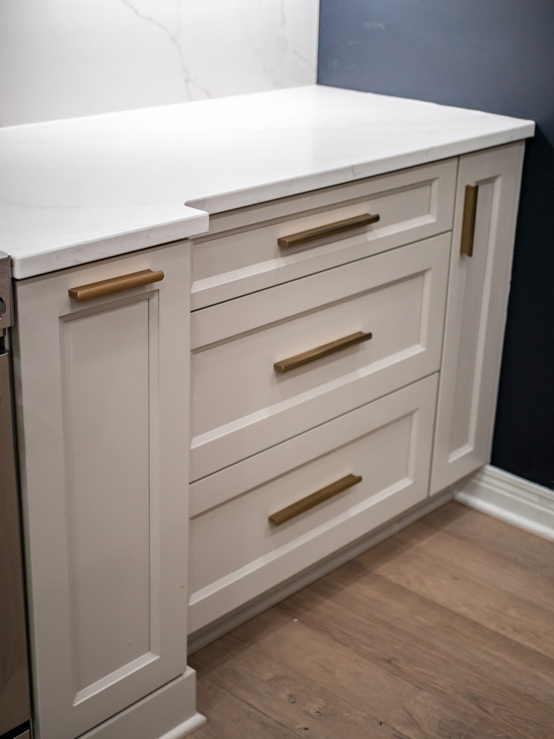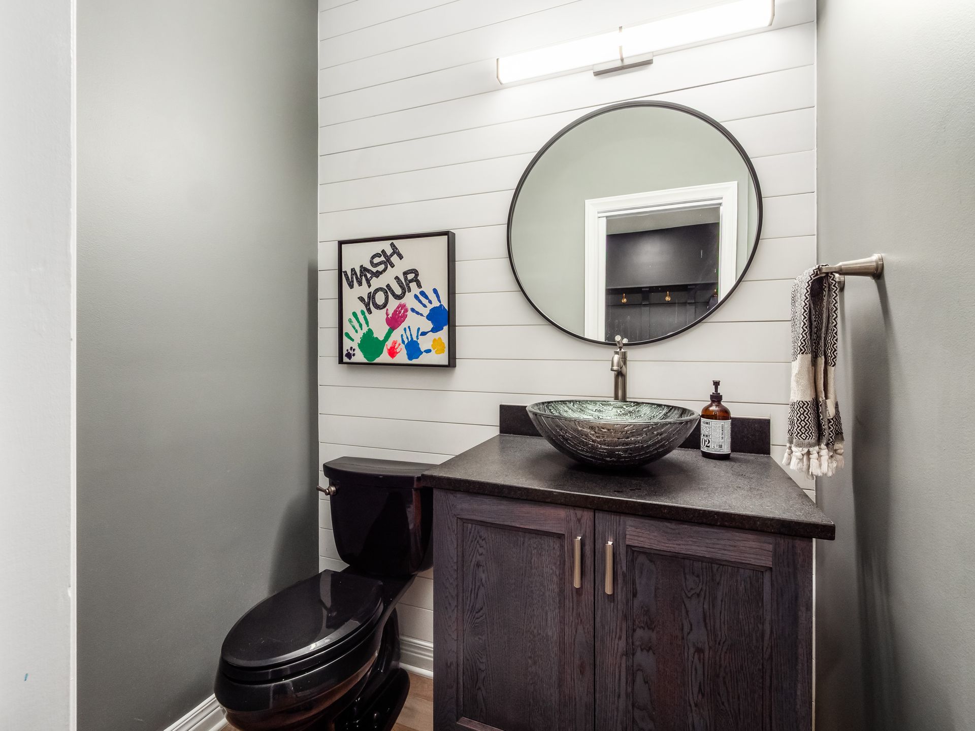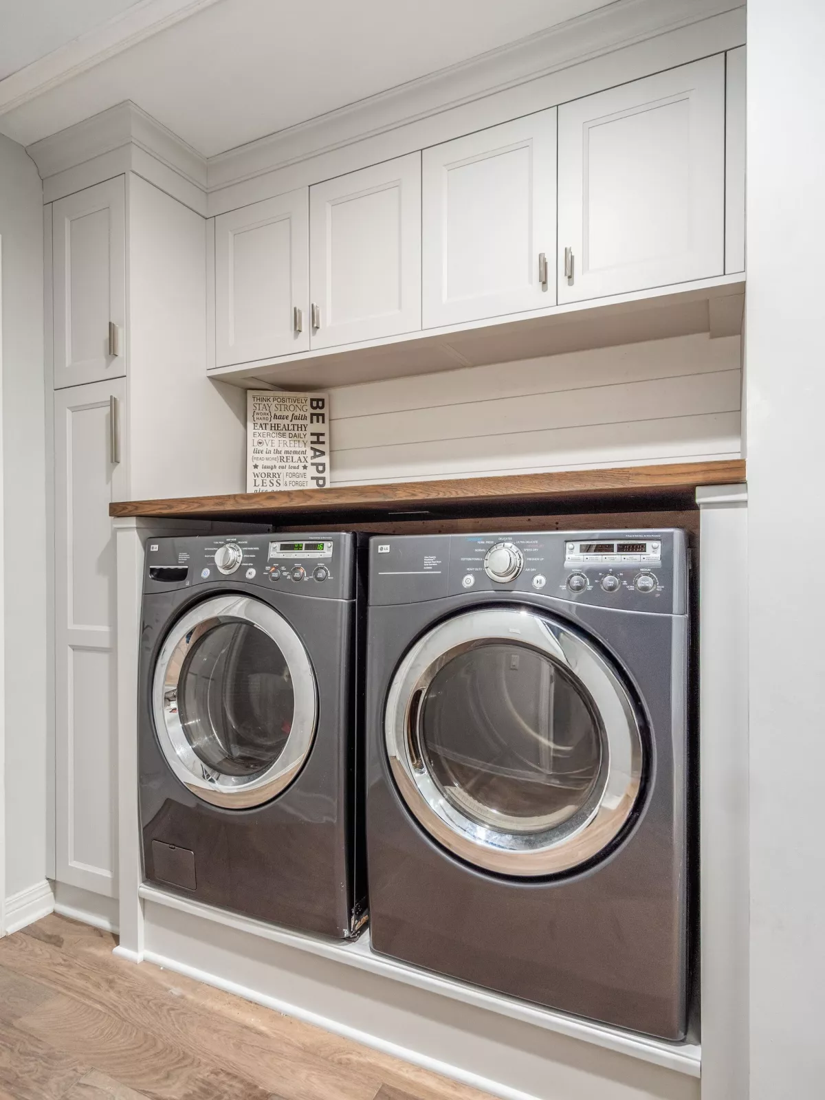 “This project was ambitious with the layout changes we made. We were able to convert a small, awkward kitchen with a tiny island into a generous space for family and friends to gather by relocating a powder bath to the previous laundry room location, while creating a separate mudroom off the garage entry. We then converted a closet in the upstairs hallway to a convenient laundry alcove. The project design and selections create a stunning impact for the new spaces, both in terms of beauty and function. It was such a pleasure putting this together for the family, and I hope they will enjoy it for many years to come!”